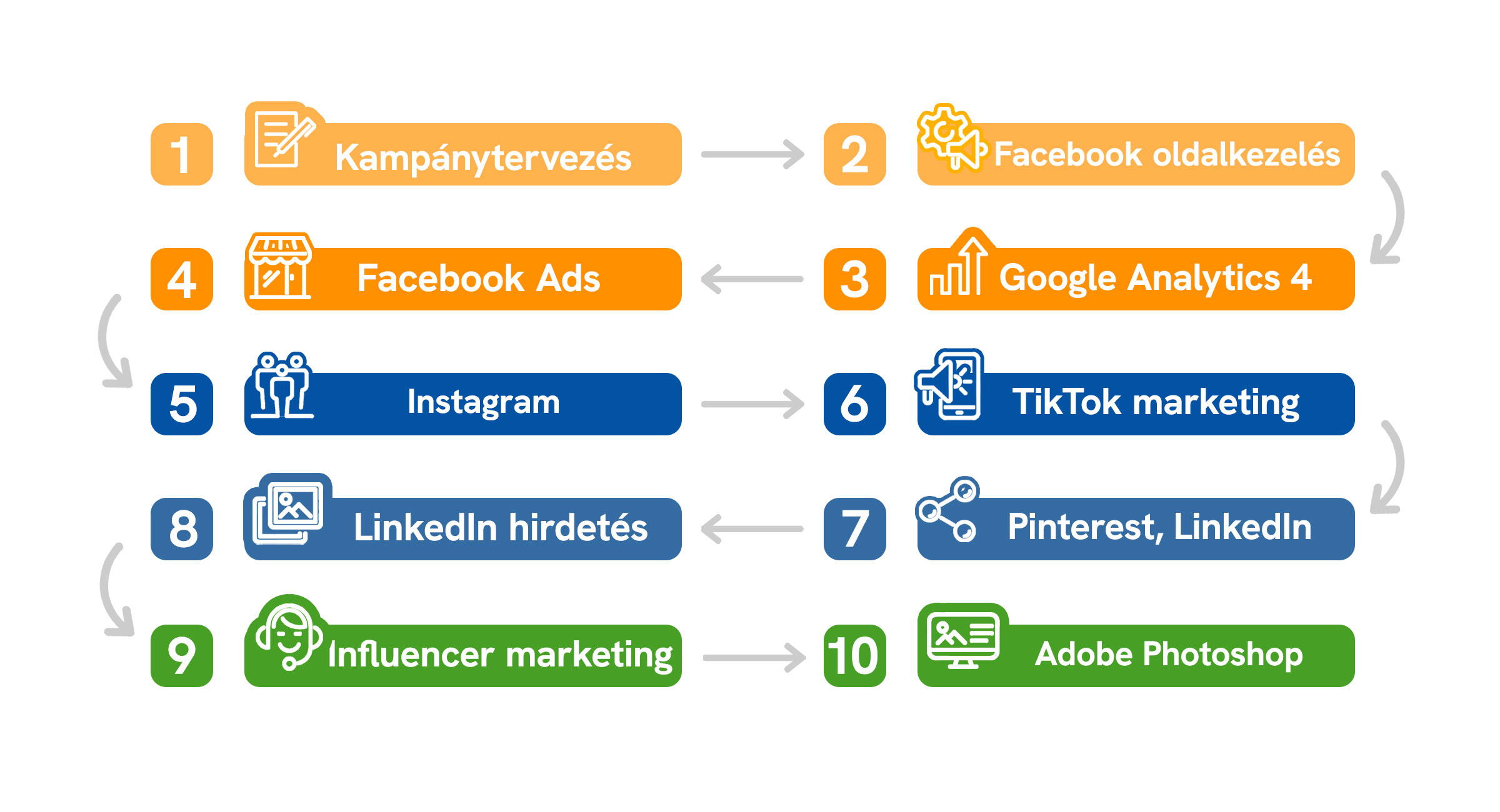 Aki érti a PPC-t (Google és Facebook hirdetéseket) valamint a kampánytervezést, az már az első héten hozhat új vevőket és bevételt. Ezért a cégek magas bérrel csábítját át ezeket a szakembereket. Ha több csatornán hirdetsz – hiszen értesz hozzá – profitot termelhetsz. Használj Facebookot, Instagramot, Google-t, TikTokot és LinkedIn-t, a GA4 pedig segít a mérésekben. Az AI-alapú optimalizálás csökkenti a hirdetési költségeket. Így a főnököd szemében Te vagy az, aki pénzt spórol ha nem kell kiszervezni és termel is ráadásul.